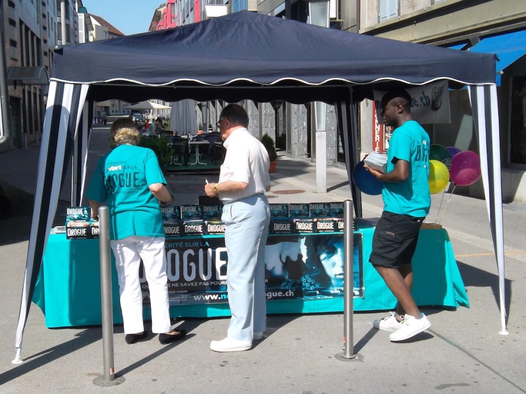 Une dame âgée a visité le stand. Elle nous a dit que ses enfants n’ont jamais touché à la drogue, grâce à Dieu. Elle nous a expliqué qu’elle leur a parlé de la drogue quand ils étaient jeunes et c’est peut-être ceci qui les a sauvé. Elle nous a fait remarquer que le dialogue est très important dans la famille: les enfants devraient se sentir libres de parler de leurs problèmes avec les parents et pouvoir leur faire confiance.