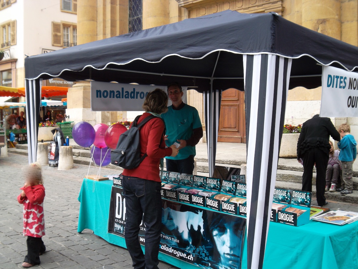 Après avoir reçu la brochure sur la cocaïne, une jeune femme est venue à notre stand. Elle nous a dit l’avoir lue quelques minutes auparavant dans un café et l’a trouvée très bien. Elle nous a expliqué qu’elle travaille avec des jeunes en difficulté qui consomment souvent des drogues, mais qu’elle n’était pas à l’aise pour leur parler de la drogue car elle manque d’information à ce sujet. Elle a pris un coffret antidrogue et le DVD, « La vérité sur la drogue » afin de se former et devenir plus compétente.